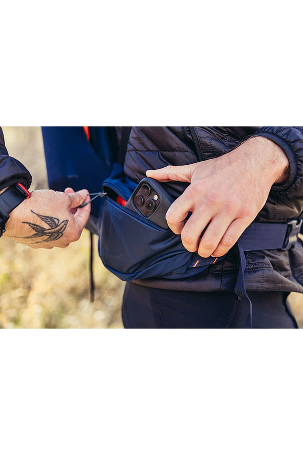 • On-The-Go shoulder strap pocket designed for the Garmin inReach®, your favorite trail snack, or sunglasses