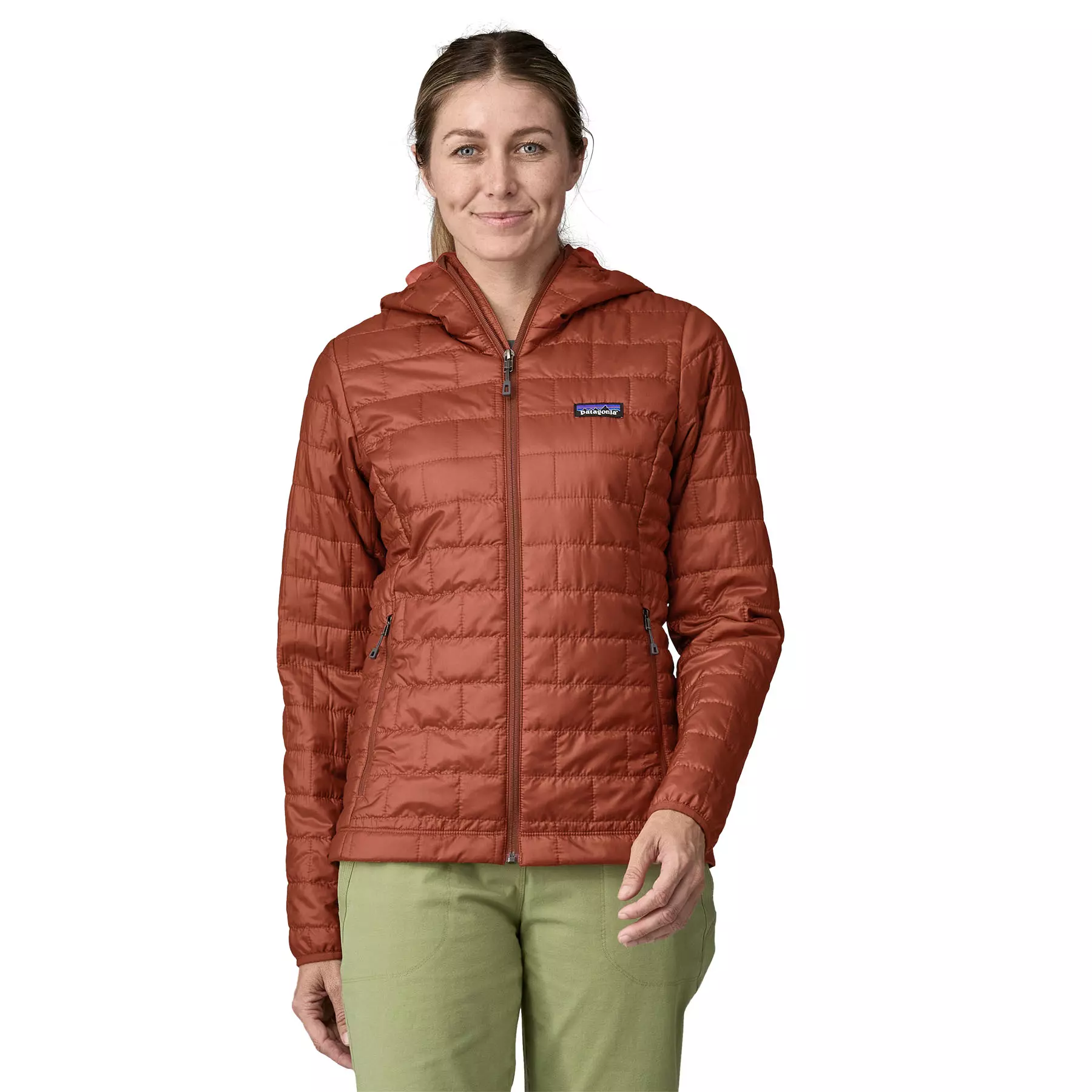 Warm, windproof, water-resistant—the Nano Puff® Hoody uses incredibly lightweight and highly compressible 60-g PrimaLoft® Gold Insulation Eco 100% postconsumer recycled polyester with P.U.R.E.™ (Produced Using Reduced Emissions) technology, wrapped in a 100% recycled polyester shell and lining.