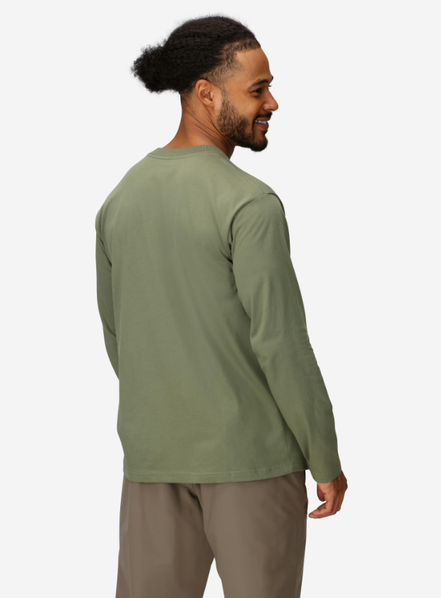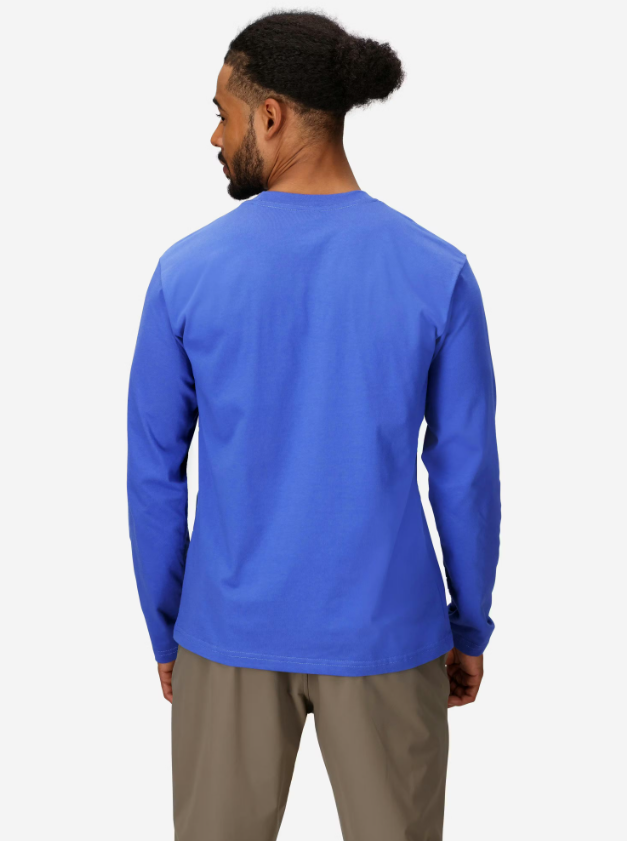 Comfortable and breathable men’s long sleeve shirt made from a cotton and recycled polyester blend, ideal for everyday wear and light outdoor activities.