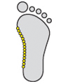 Тази, така наречена „арка“, е изключително твърда и ходилото не амортизира, което при по-голямо натоварване би могло да доведе до травма имено в тази област.