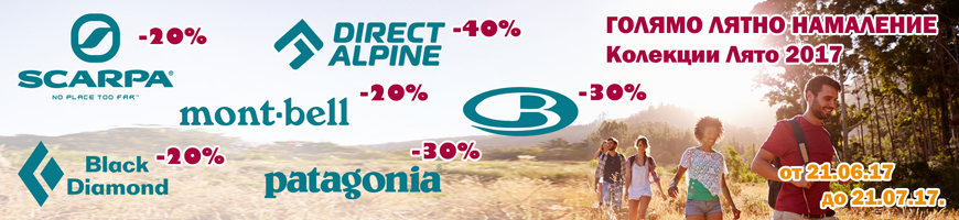 Честито лято, приятели! В магазини Basecamp празнуваме като даваме старт на Голямото лятно намаление! Летните колекции за 2017 на любими марки, сега на страхотни цени!  SCARPA -20%, MontbellJP -20%, Directalpine -40%, Patagonia -30%, Patagonia Fly Fish -30%, Black Diamond -20%! Екипировката, която ще направи приключенията ви в топлите дни по-сигурни, приятни и усмихнати! Така започваме лятото и ви очакваме на адрес Черни връх 90, Стамболийски 46.