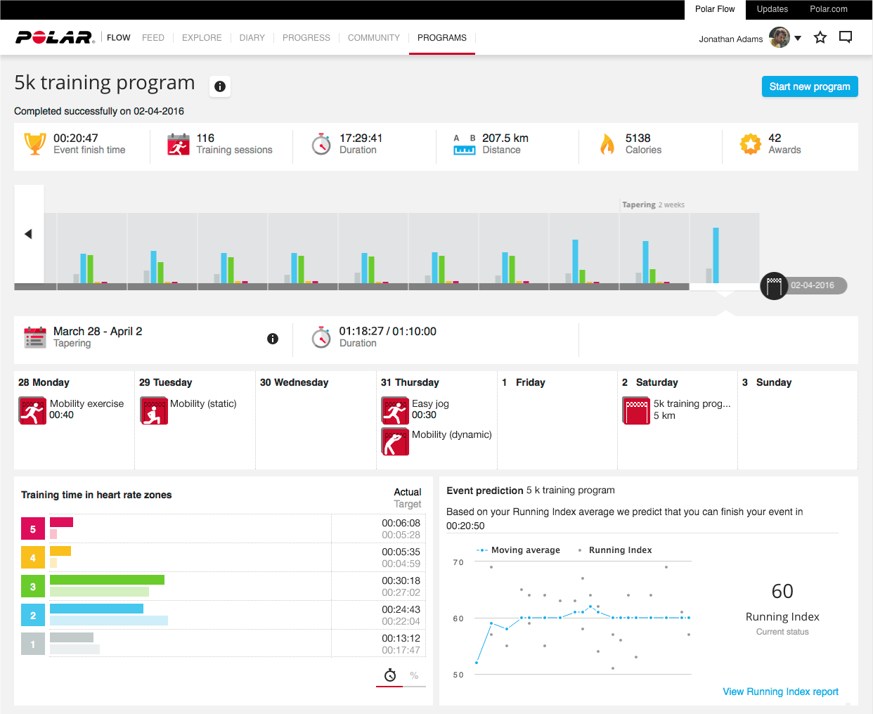 Програмата за бягане от Polar е безплатна. Това е мотивиращо. Лесно е да се използва.